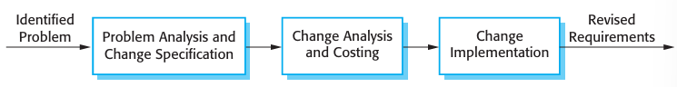 Change analysis and costing - The proposed change is evaluated by assessing its impact on requirements using traceability data and system knowledge. The cost of implementation is estimated, covering updates to the requirements document and possible design or implementation changes. Based on this analysis, a decision is made on whether to approve or reject the change.