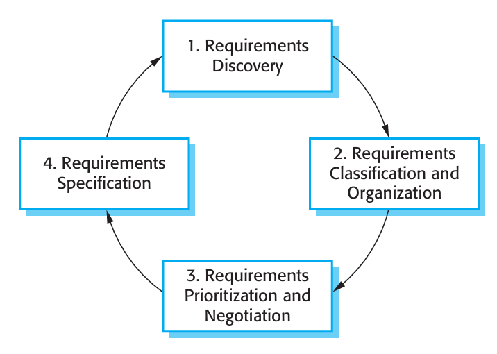 Requirements discovery – Engaging stakeholders and reviewing documentation to identify both system and domain requirements using various techniques.