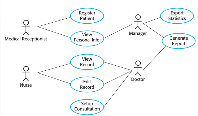 Stakeholders range from end-users to managers and external regulators. For example, in a healthcare system, stakeholders include patients, doctors, nurses, receptionists, IT staff, ethics managers, healthcare managers, and records staff. Beyond stakeholders, requirements can also arise from the application domain and interacting systems.